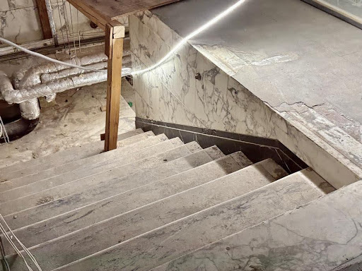 I kælderen under Peschiers Palæ (Holmens Kanal 12) har man nemlig afdækket en gammel marmortrappe, som var skjult bag en masse installationer. Trappen fremgår af de oprindelige tegninger og har længe været planlagt til genetablering, men viste sig overraskende velbevaret. Kun mindre reparationer og et nyt gelænder er nødvendigt. Når dørene åbnes til Laksegade Kvarteret, vil den restaurerede trappe være hovedadgang til et nyt kantineområde.